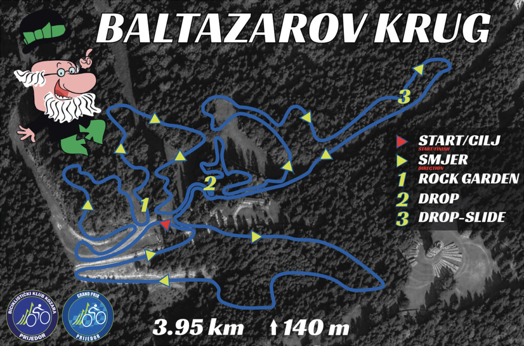 Personalizovani pehari, personalizovane medalje, šta još može biti posebno? A da! Našu stazu nazvali smo “Baltazarov krug” po crtanom junaku – profesor Baltazar. Budući da se Baltazar lako dosjeti svakog riješenja, a i mi već imamo našeg Baltazara, stvari su bile proste oko imenovanja staze. Tako da naš “Blatazarov krug” sada ima: “Baltazarov kamenjar”, “Baltazarov mali drop” – sarkastično mali, “Baltazarov tobogan” a dogodine i zvanično “Baltazarov most”.